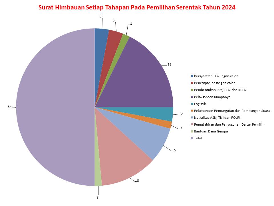 4. Pelaksanaan Pemungutan dan Penghitungan Suara mencatat 2 surat imbauan, menunjukkan perhatian khusus pada tahap inti Pemilihan untuk memastikan keakuratan dan transparansi proses pemungutan serta penghitungan suara.