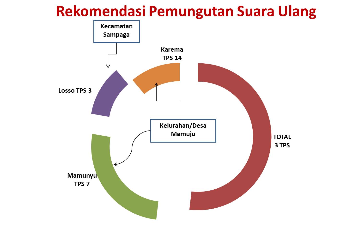–  Ketiga TPS ini tersebar di wilayah Kabupaten Mamuju, menunjukkan bahwa pelanggaran atau kekurangan prosedural tidak terpusat di satu wilayah tetapi tersebar secara merata.
