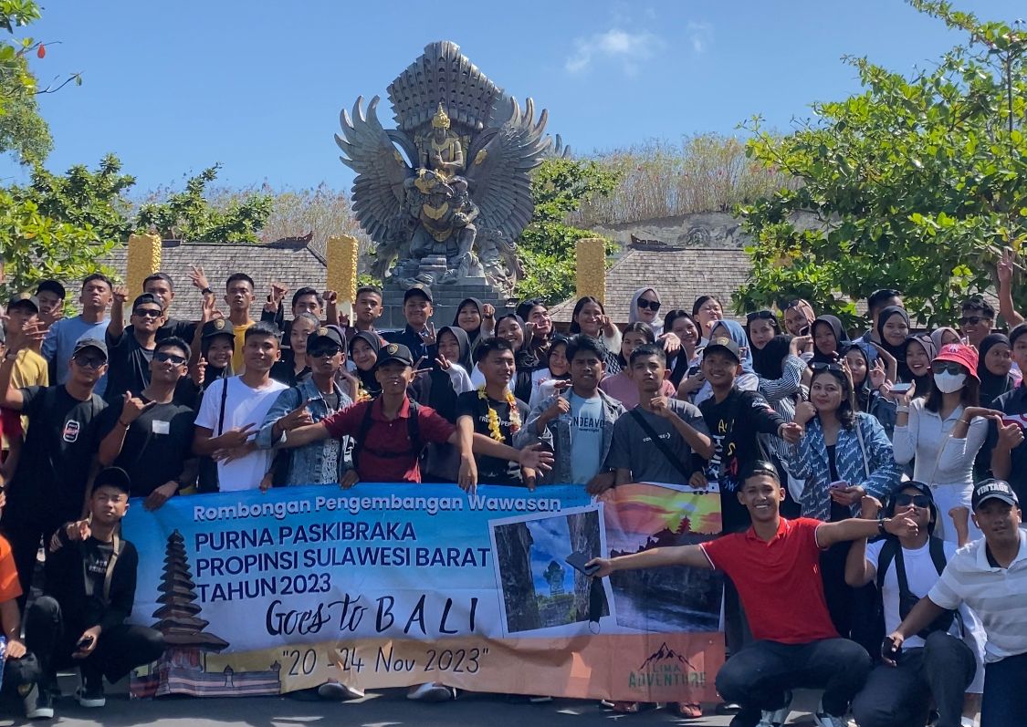 - Rombongan Purna Paskibraka Sulbar mendatngai Patung Wisnu Kencana, Bali.