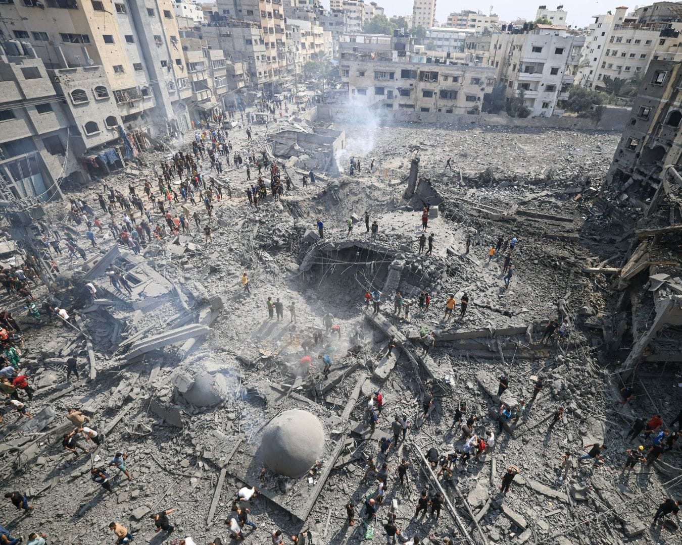 Serangan Israel meratakan beberapa apartemen tempat tinggal di Gaza dan menghancurkan sebuah masjid di Khan Yunis, Gaza, serta menghantam bank sentral.