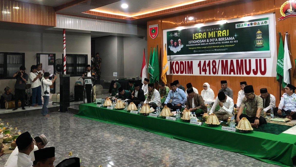 MAMUJU, Mekora.id – Ratusan kader Nahdlatul Ulama (NU) di Mamuju, Sulawesi Barat (Sulbar), menggelar istighosah dan doa bersama dalam rangka memperingati Isra Mi’raj serta Hari Jadi NU ke-102 tahun. Acara ini berlangsung di Aula Outdoor Kodim 1418 Mamuju, Jl. Yos Sudarso, pada Senin (3/2/2025) malam.
