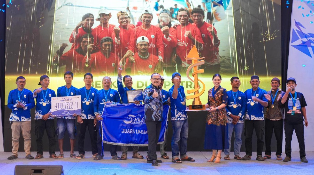 - Wamenpar, Ni Luh Enik Ermawati dan Gubernur Sulbar, Suhardi Duka serahkan piala untuk Juara Umum Sandeq Silumba 2025, tim Berkah Dua Putra di Mamuju.